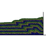 When modelling deformation, high resolution and high displacement combined can be a tall order. Computationally it is quite demanding but if you have a machine that you can "hijack" for a while the results are worth waiting for I think. Here is a (2 1/2 mins or so) movie of 6 km shortening being accrued/accommodated in a thrust wedge. Initial geometry 1.25 x 20.0 km, so 30% shortening of this frictional cohesive section, very weak base. Resolution is approx. 10m, c. 80,000 elements. Right end-wall is displaced horizontally 0.0005m per time step to accrue the 6000m shortening (that is 12 million time-steps). But the 2D discrete element code handles this with ease and is stable. 32 threads OpenMP running under Windows. First half of the movie is just the "simple" geometry as it develops showing lots of nice features, second half of movie is the incremental max. shear strain (calculated over previous 2m of shortening) which is a great way of visualizing localization, activation of faults etc etc.